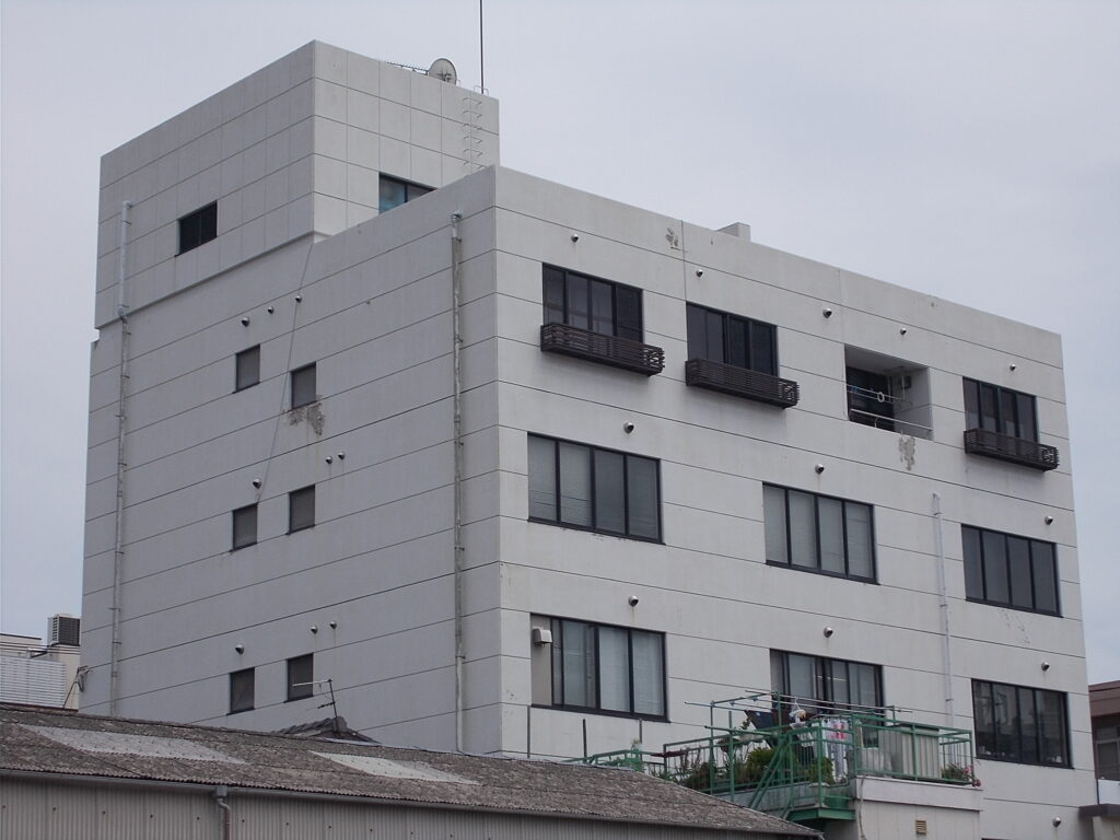 | 施工数量 | ・外壁塗装 1,007.5m2 ・駐車場入口金属パネル塗装 9.8m2 ・竪樋塗装 74.9m ・塔屋鉄扉塗装 3.2m2 ・窓周りシーリング打替え 434.4m ・躯体目地シーリング打替え 187.4m |