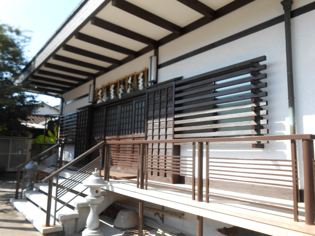 「和尚様、前年は庫裏の塗替えをさせていただき、ありがとうございました。庫裏がきれいになったので本堂の方がとても気になっておりました。 梅雨の時期もあってちょうど当方も暇にしており、職人を遊ばせている訳にはいきませんでしたので、奉納という形で施工をさせていただきました。 木部は今回初回塗りでしたが、汚れていた外壁はすっかりきれいになったと思います。やはり塗替えをするときれいになりますね。自分も嬉しくなりました。」