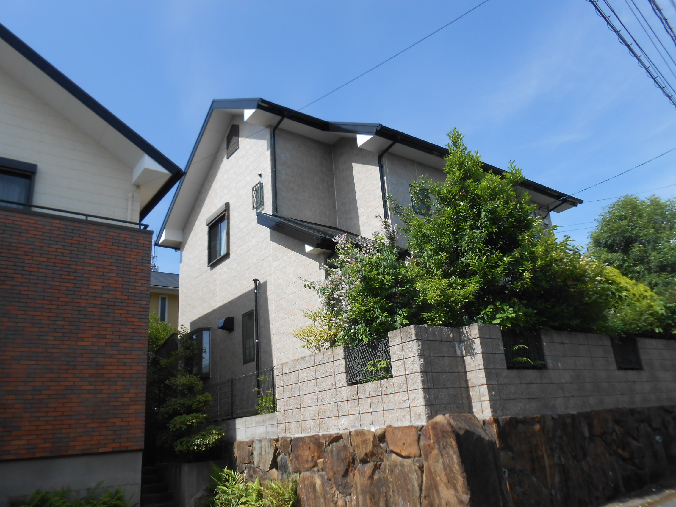 | 使用した塗料 | ・外壁 プレミアムペイント「No.1 ex」 ・磁器タイル 日本ペイント「ファイングラシィSi」 ・コロニアル屋根 プレミアムペイント 「コールドNo.1 ex」 ・ベランダ防水 AGCポリマー建材「サラセーヌ」 |