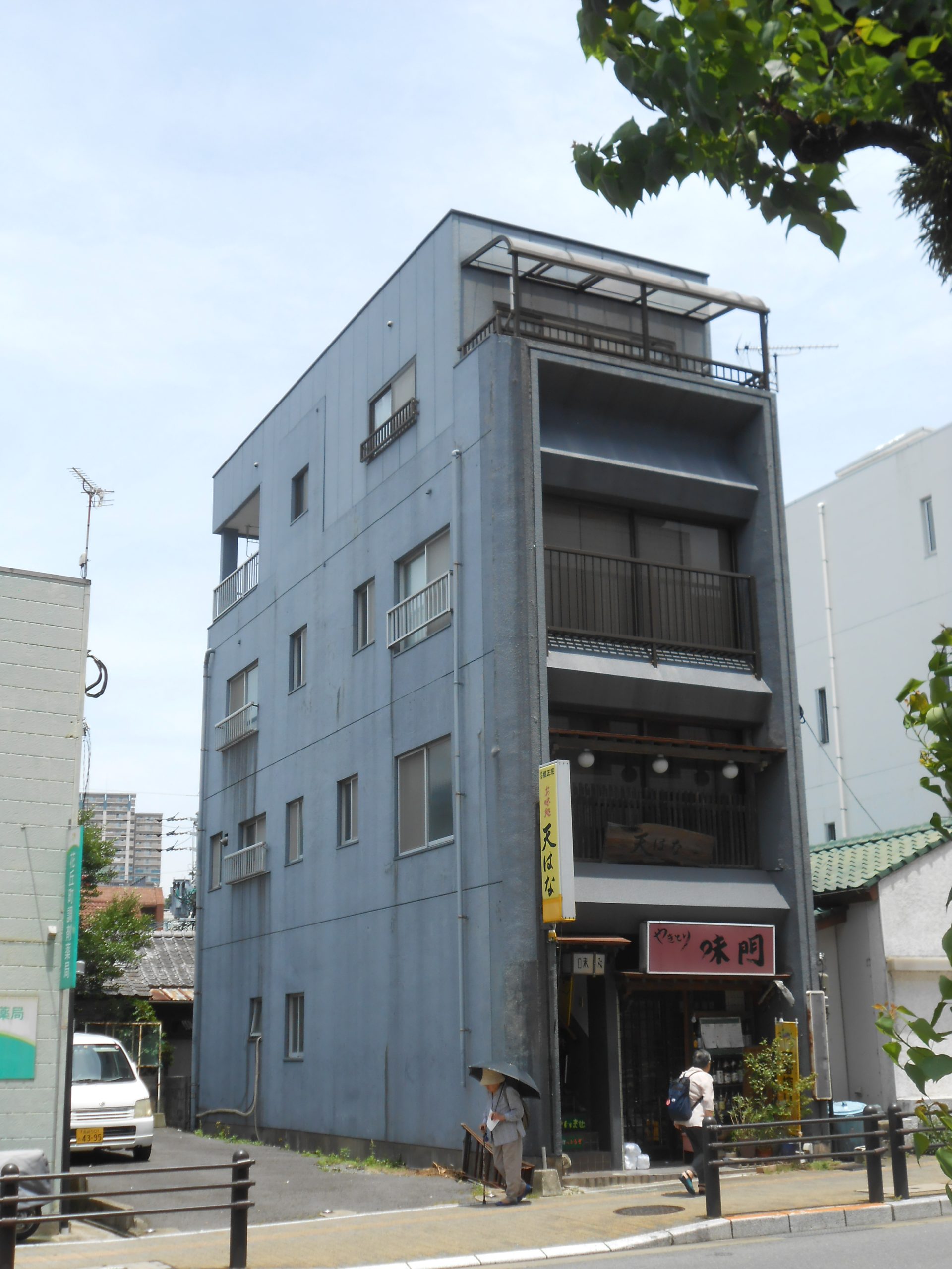 既存と同じ色でというご要望でしたが、少し雰囲気を変えると感じが変わりますので、道路に面した南側の壁面を同系の濃い色で仕上げてみました。インパクトのあるビルになったのではと思いますが、如何でしょうか? 屋上の防水も気になさっておられていますが、見たところしっかりしていましたのでまだ2~3年は大丈夫と思います。次回塗替えの時期を待たず何か気になったことが出てきましたら、なんなりとご連絡ください。これからもどうぞよろしくお願い申し上げます。」